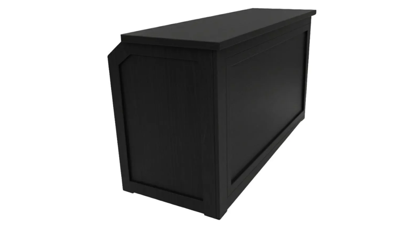 With a reversible front that flips between a smooth surface and a paneled design featuring horizontal lines in three vertical frames, this bar adapts effortlessly to your events theme